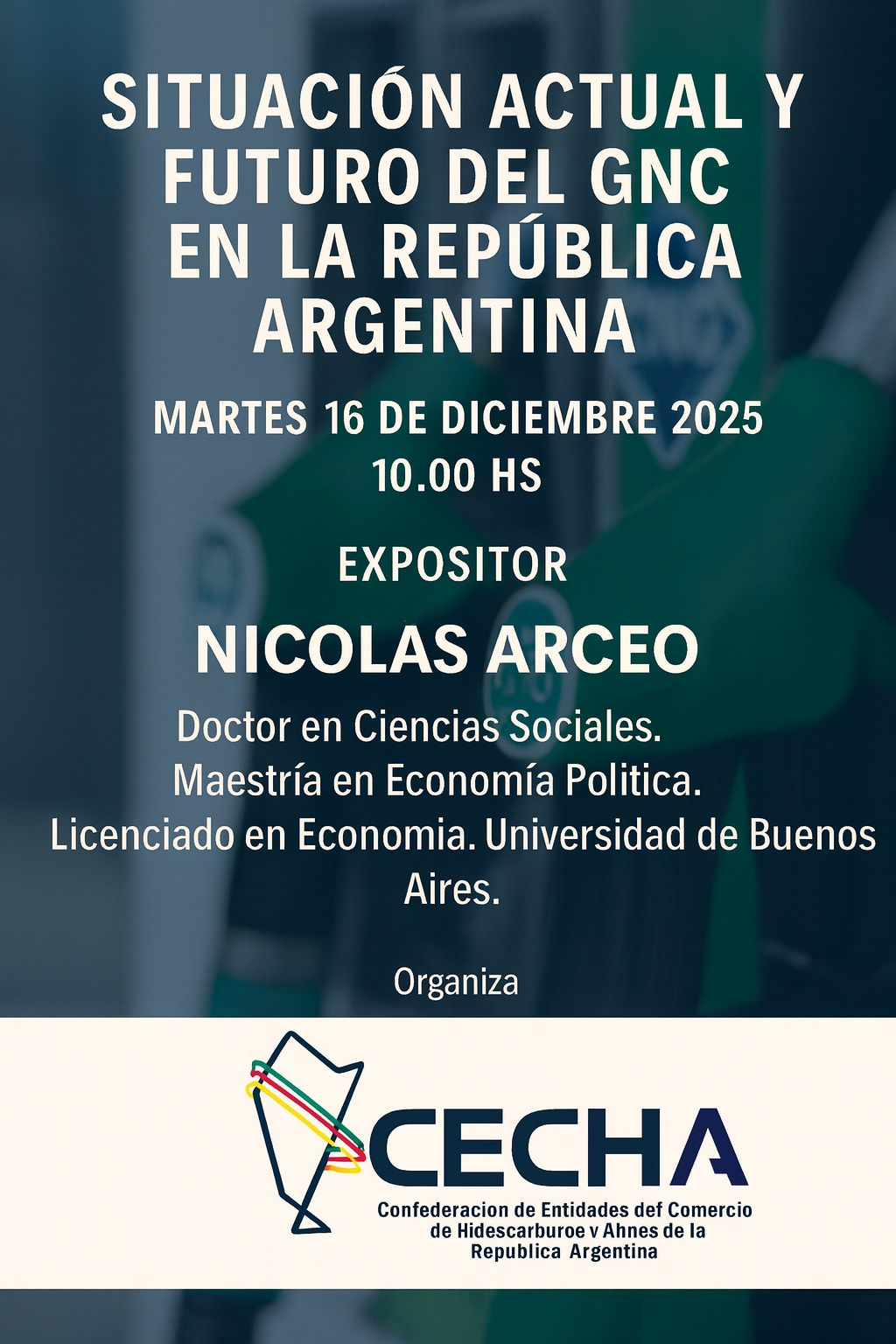 Se adjunta Flyer y link de invitación para participar de la presentación virtual que realizará el Lic. Nicolás Arceo sobre la “Situación Actual y Futuro del GNC en la República Argentina”. Esto es mañana, martes 16 de diciembre, las 10:00 hs.